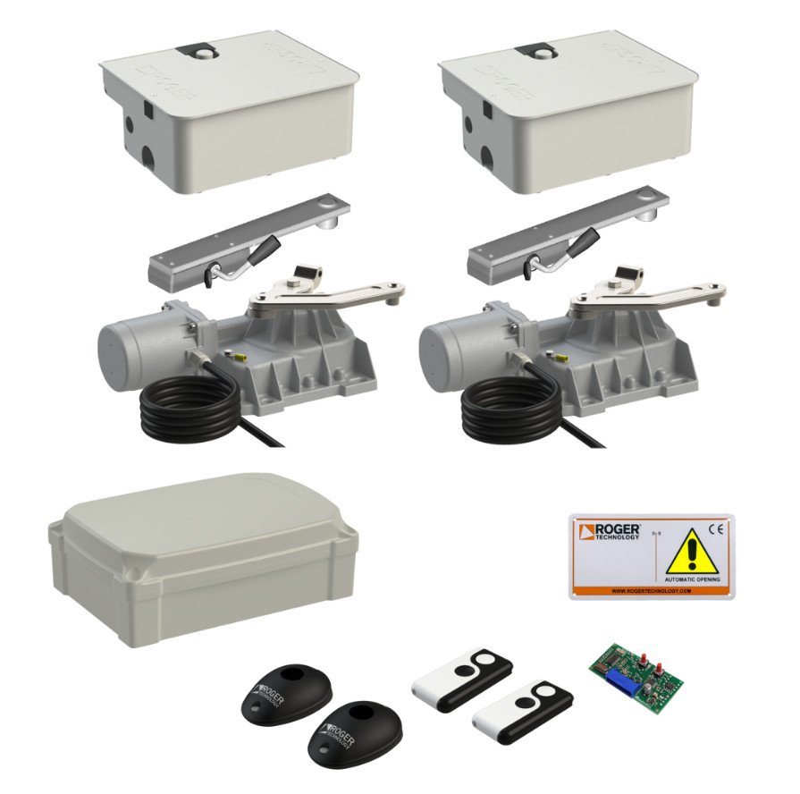Napęd ROGER KIT SET BR21/354/F Zestaw do dwuskrzydłowej bramy o maksymalnej szerokości wjazdu 9 m (4,5 m + 4,5 m)